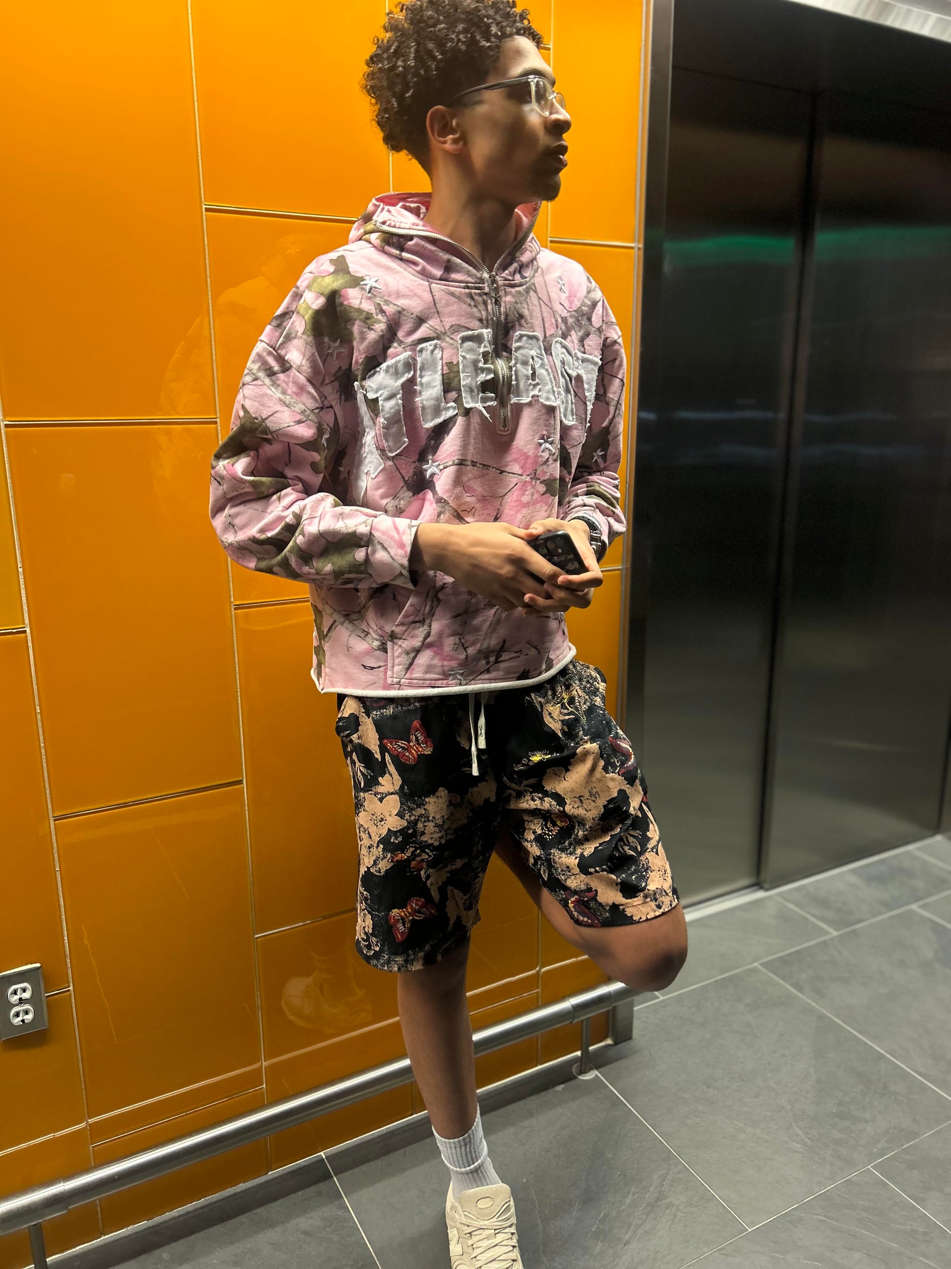 This hoodie does the most in the best way. It's a comfy half zip-up with a star-shaped zipper, plus embroidered stars all over-so you're giving main character energy from every angle. The satin-inside hood keeps your hair smooth and frizz-free, and there's even a built-in ski mask for extra vibes or chill days. It's cut at the bottom (not cropped!), so you still get that cropped look without losing any length. And the best part? It's got distressed embroidery logos on the front and back, so it's giving cool and different-just like you.